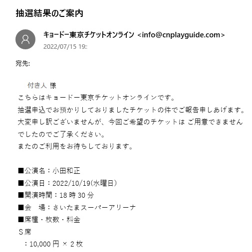これで横浜アリーナ千秋楽でも当選してたなら「ひがみ」「やっかみ」で嫌がらせを受けたり・・・(・・;)