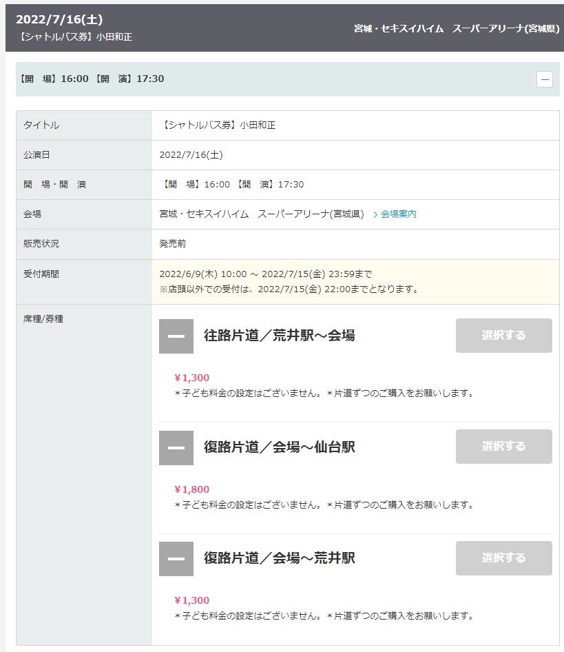 6月9日(木)10時よりローチケで宮城:セキスイハイムスーパーアリーナ(グランディ・21)公演の駐車券およびシャトルバス券の先着販売が開始されますので必ず早期に購入しましょう。