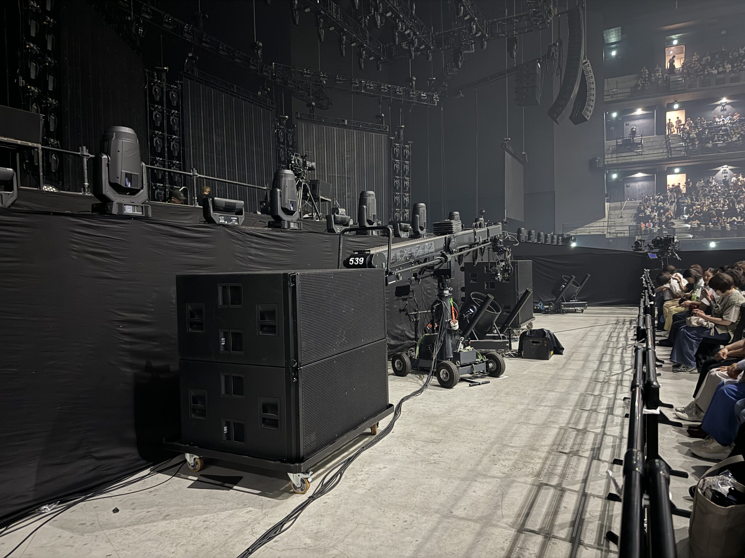 舞台前のクレーンと舞台カメラ、