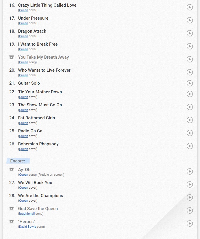 上記のセットリストをクリック後に各曲名右側の▶マークをクリックすると映像がご覧いただけます。