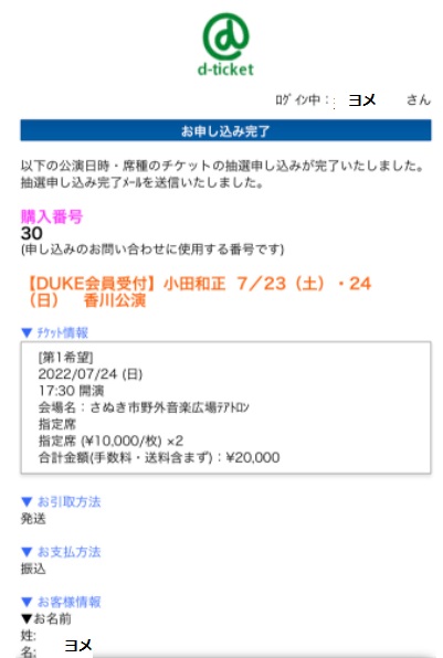 当選通知を受取ってルンルン気分で小田さんの歌を聴くことができるか、落選して落ち込みながらライブ会場にたたずむのか・・・。
