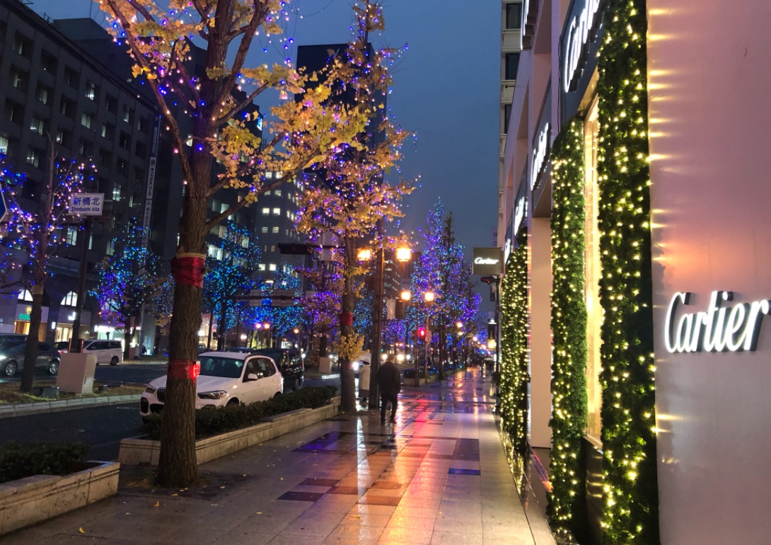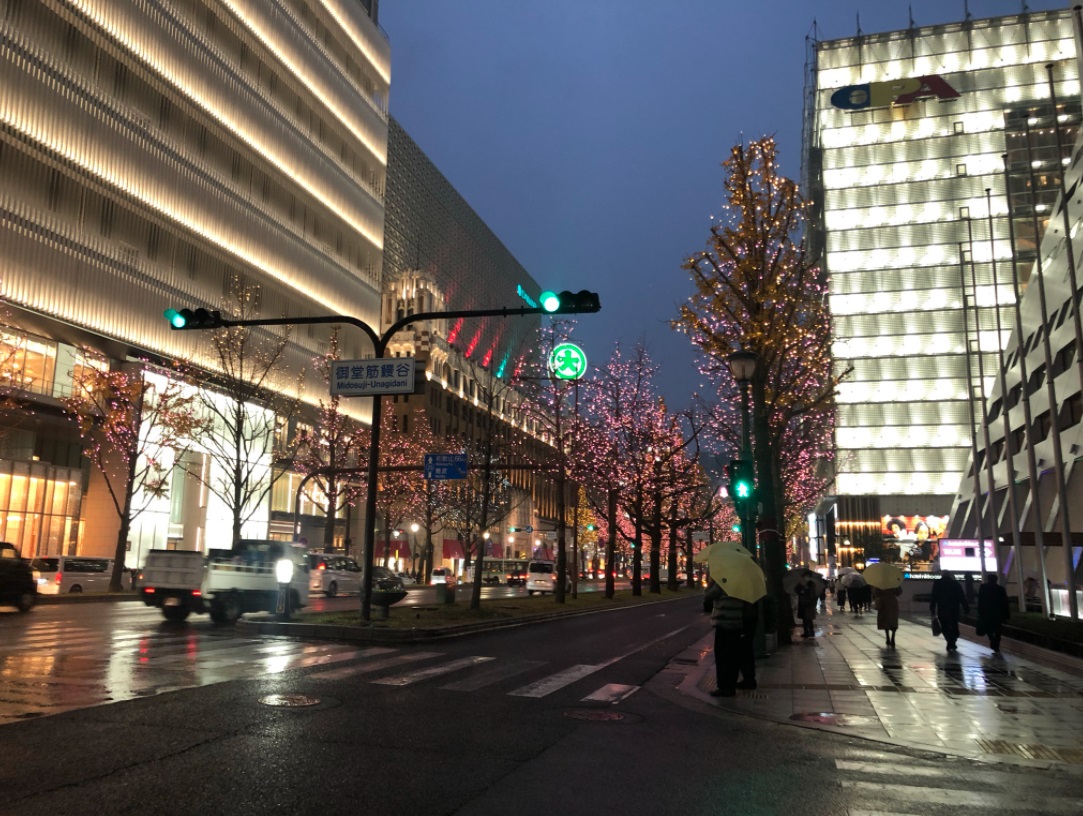 (2020年12月24日雨の御堂筋:撮影者:付き人 以下同じ)