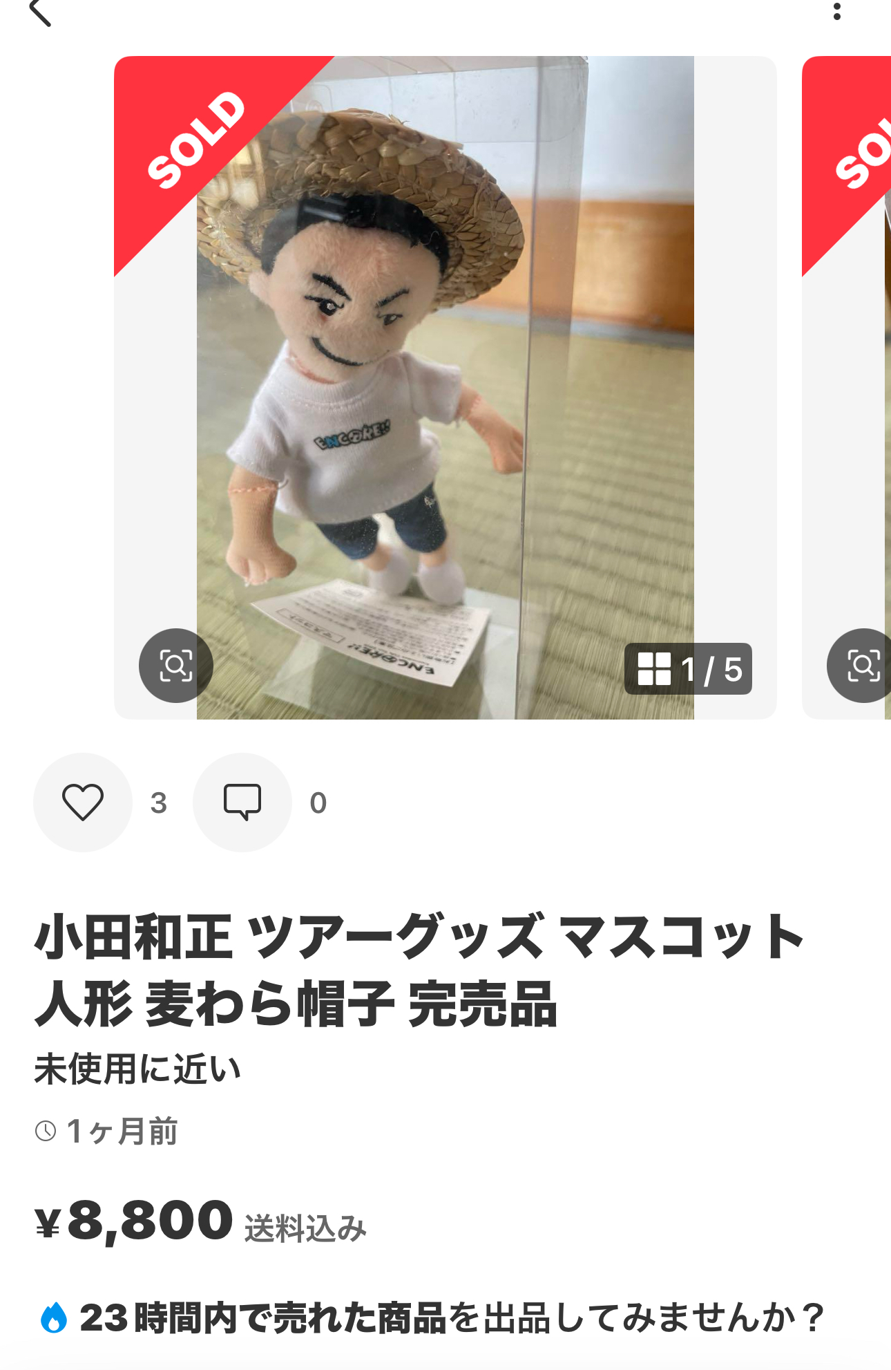 和正くん迷子になってしまったとのこと、麦わら帽子の和正くん(自宅でケースに入れたまま保存)お譲りできます。