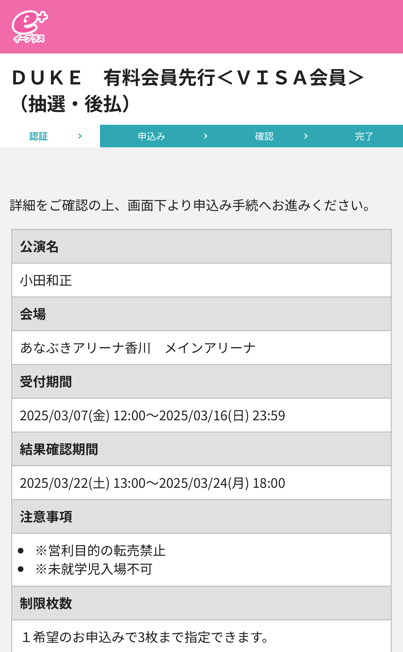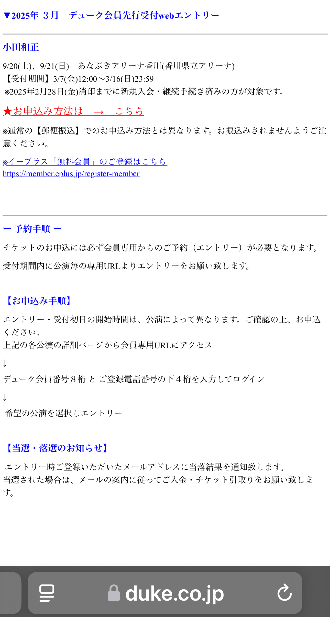 2025年3月7日12:00より今回のツアー最大の難関会場、「あなぶきアリーナ香川公演」の主催者であるDUKE有料会員向け先行抽選受付が開始されました。