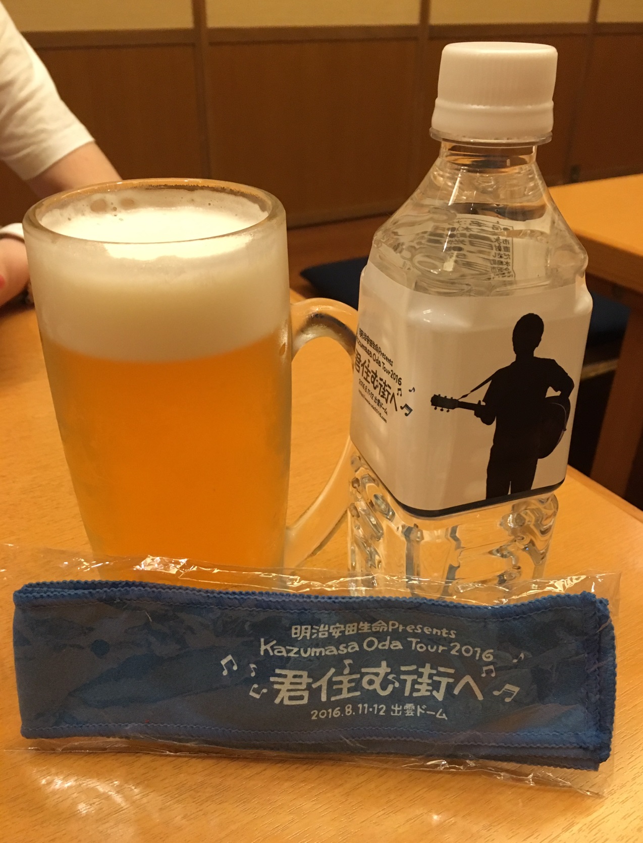 入場時にユニオン音楽事務所さんから全員に配布された「小田水」とネッククーラー。これはうれしかったです。山口公演でも是非いただければ…。←あつかましい!